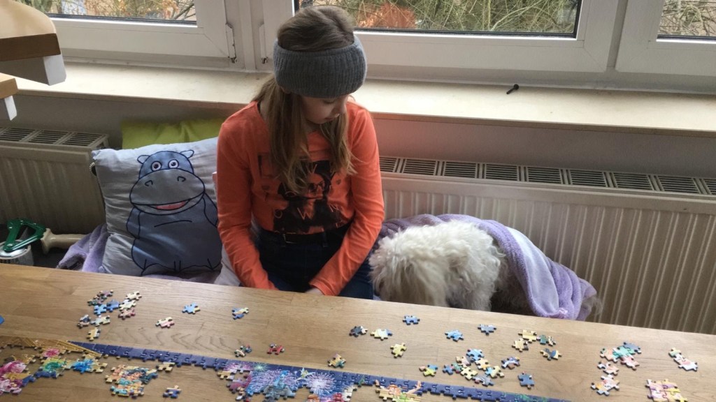 Die Mädels lenken sich zuhause derweil beim Puzzlen ab. Würde ich auch gern machen. 😁