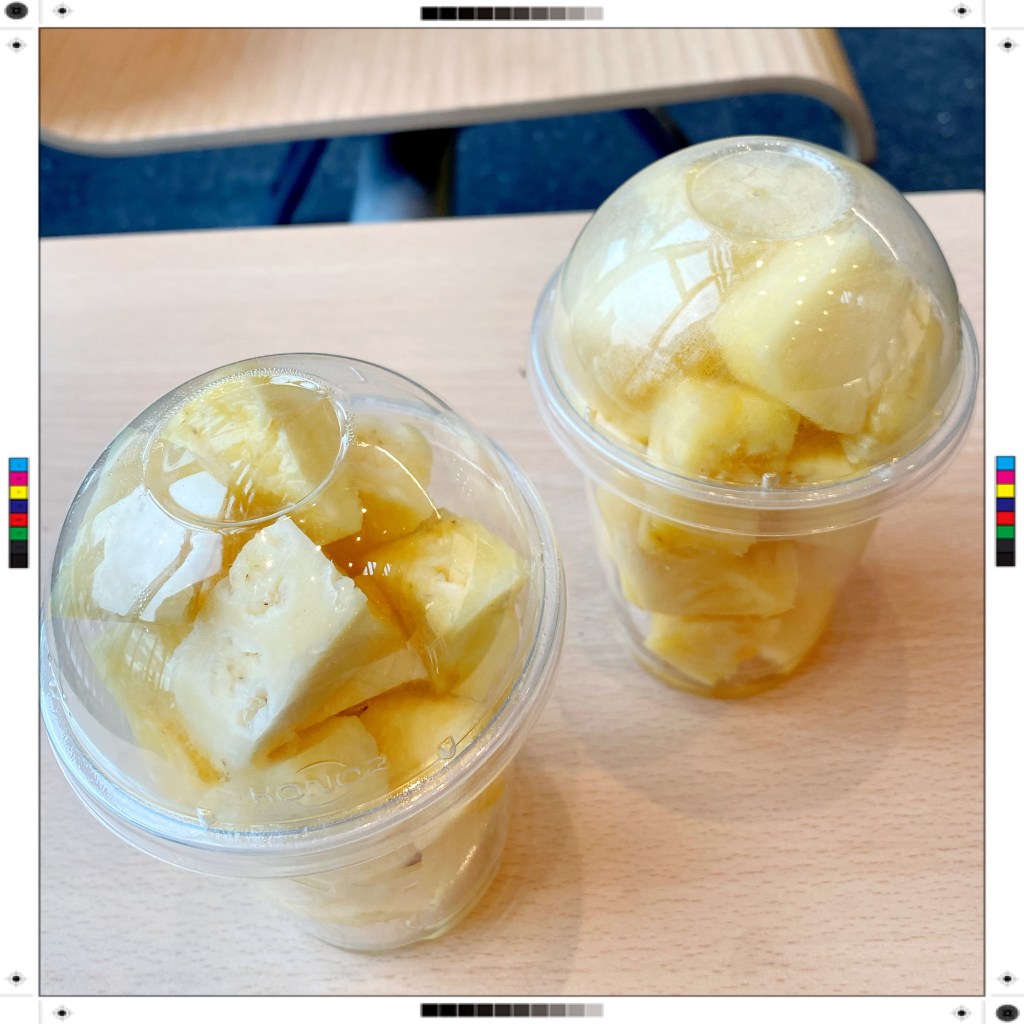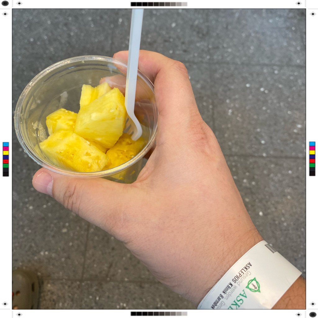 So habe ich auf jeden Fall auch viel Ananas geschreddert und entsaftet. Aber auch hier in der Klinik ist Ananas ein fester Bestandteil meines Ernährungsplans. Ich hole mir täglich 1-2 Portionen fertig geschnitten beim Frischobst-Kiosk vorm Haupteingang.