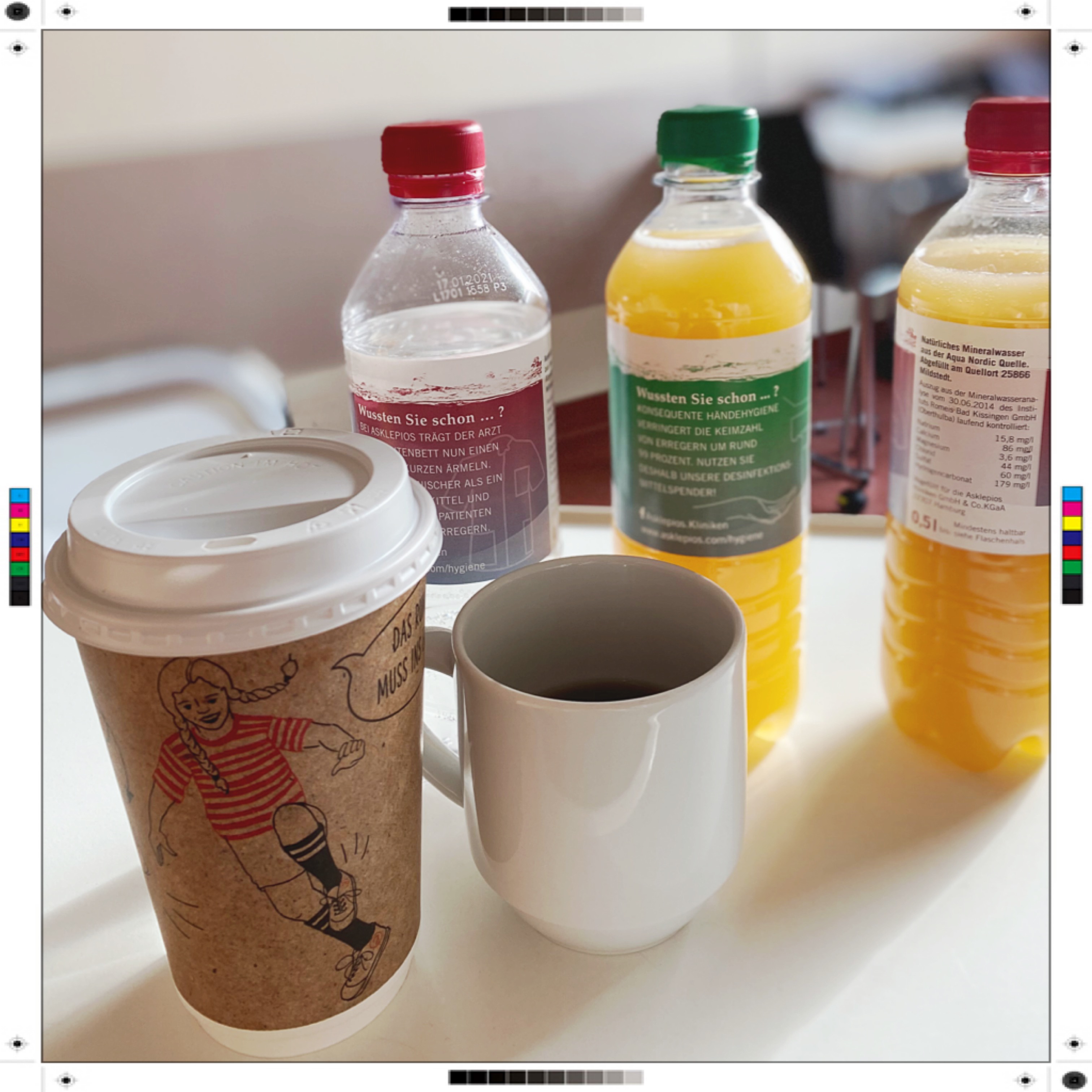 Was soll’s. Frühstück ist angesagt. Mein Körper giert nach tierischem Eiweiß. Eine Scheibe Wurst habe ich auf meinem Tablett. Der Rest ist Süßkram. Wäre früher das Paradies für mich gewesen. Heute hätte ich lieber noch zwei weitere Scheiben Wurst. Aber auch das ist nicht schlimm. Die Bäckerei Junge im Erdgeschoss wird das nachher noch regeln. Erstmal einen Pfefferminztee und ein Brötchen. Danach die Pillen.