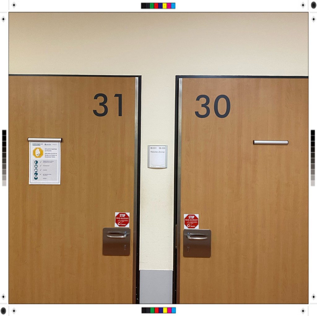Zeichen des Fortschritts: An meiner Tür (30) wurde der Zusatzhinweis entfernt, auf dem darauf hingewiesen wird, dass Pflegepersonal und Besucher bitte zum Schonung des Patienten Schutzkleidung tragen sollen.