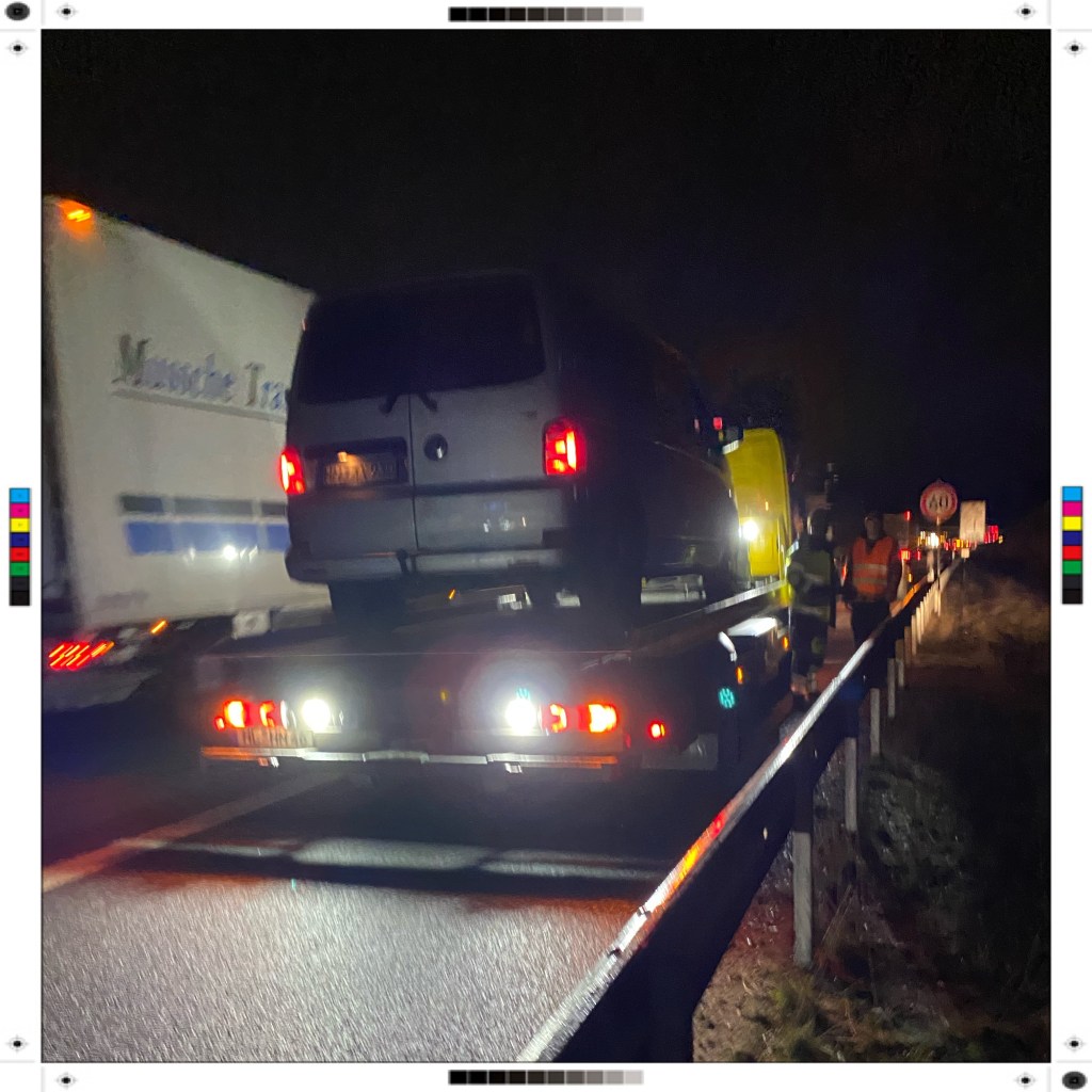 Inzwischen sind Paddy und Veit eingetroffen. Ich hab zwar ein Abschleppseil im „Hecklundt Van“ aber über die Autobahn abschleppen ist ja nicht erlaubt. Auch nicht die 3 km bis zu nächsten Ausfahrt. Was nun? Riskieren? Oder doch den ADAC rufen? Oder um es poetischer, kosmopolitischer und more international auszudrücken „ADATSCH“.